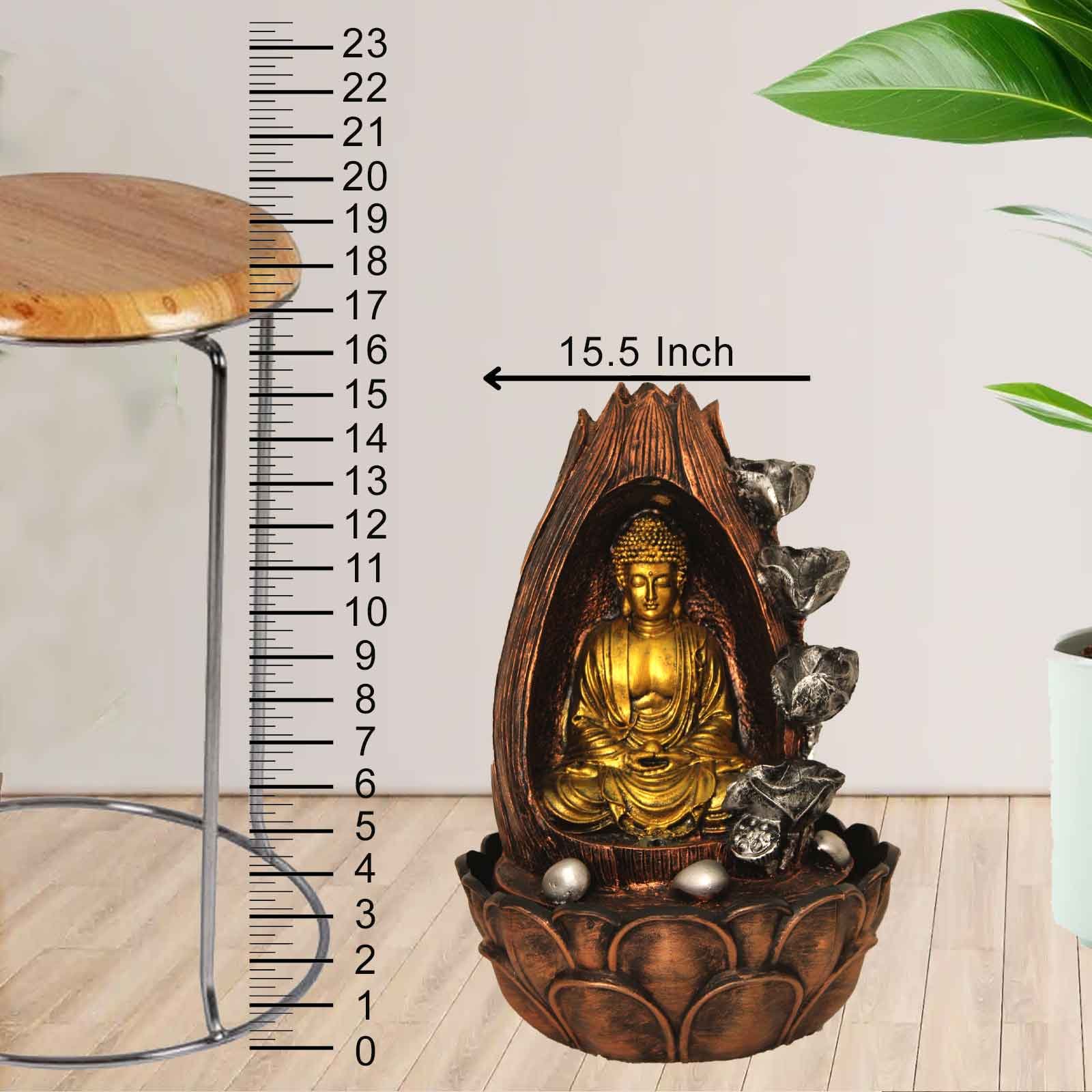 Dhyan Buddha corner water fountain for home decor With Led Light - sandstone Fin...