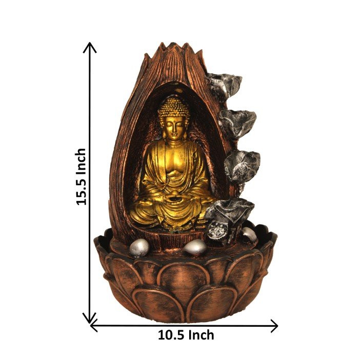 Lotus Buddha indoor water fountain is a beautiful showpiece for home decor. This indoor water fountain not only looks great but also brings positivity to your space. Sound effect of water fountain helps create a positive and harmonious environment. As a home decorative water fountain, it adds a touch of elegance and peace to your living space. This Lotus Buddha also makes for a wonderful decorative gift item for home decoration, ideal for housewarmings or special occasions. An indoor water fountain is best decoration and thoughtful gift. Whether placed in a living room, home, office, showroom, restaurant, hotel and wedding hall, the gentle sound of flowing water can enhance the beauty of area. As a gift, an indoor water fountain is not only visually appealing but also symbolizes harmony and balance. Water fountain is best ideal decorative gift choice as birthday, housewarming, office / shop inauguration, New Year, Wedding, Corporate Diwali gifts or any occasion.