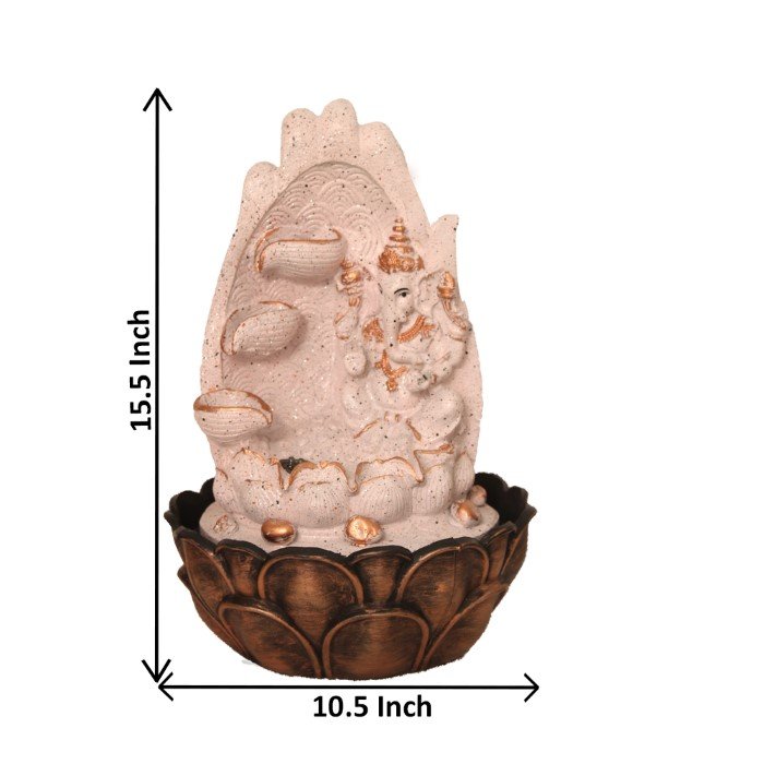 Lotus Diya Ganesha small size water fountain for home With Led Light - sandstone...