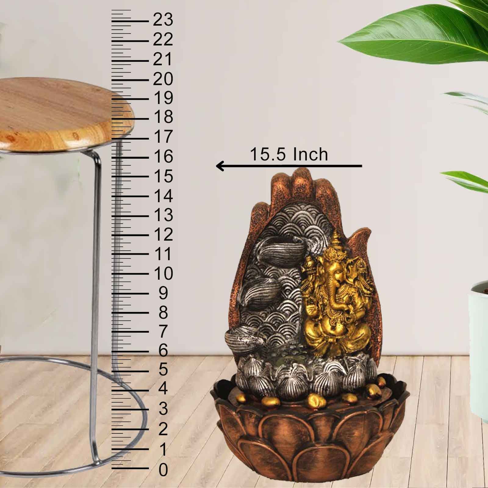 Ashirwad Ganesh corner waterfall home decor With Led Light - Metalic Antique Fin...