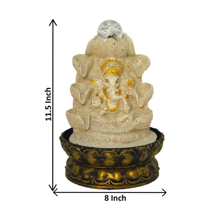 Decorative Diya Ganesh desktop fountain Waterfall With Led Light & Crystal Ball ...