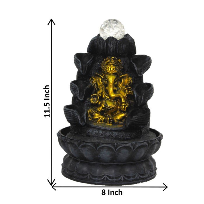 Lotus Ganesh water fountain for home With Led Light & Crystal Ball - Metalic Ant...