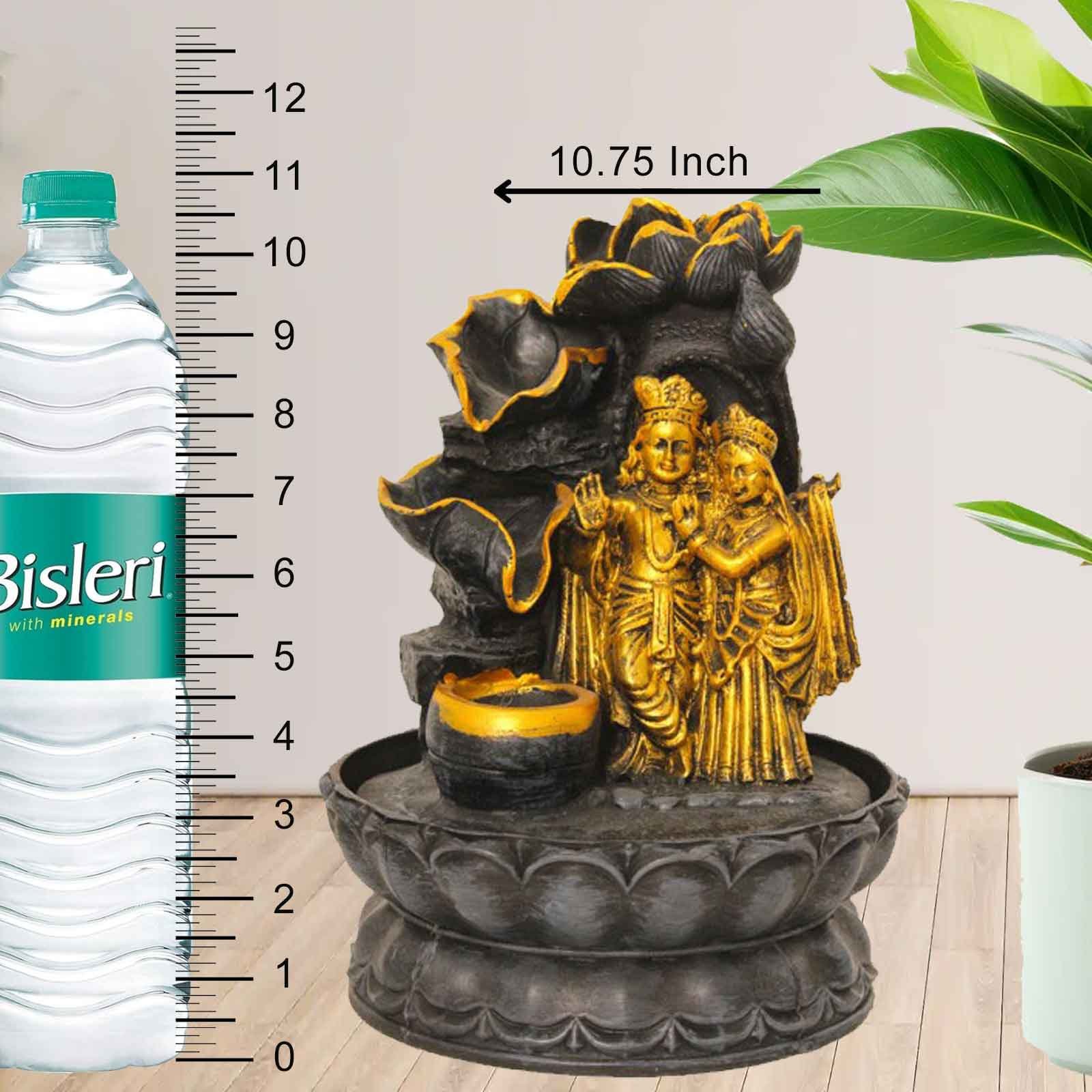Lotus Radha Krishna water fountain for home vastu With Led Light - Metalic Antique Finish 27 cm G57GX0445FGAMX