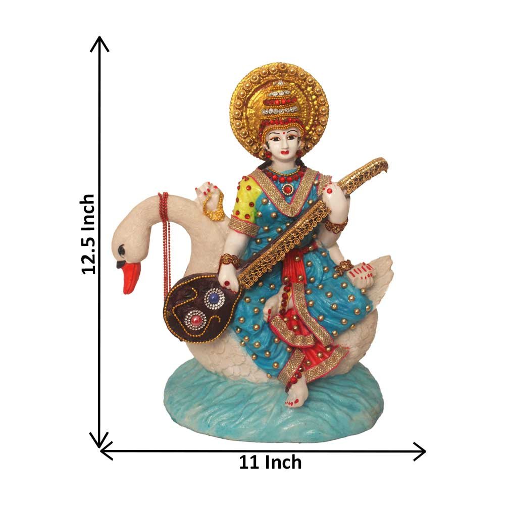 Make in India Ma Saraswati Idol is made by professional artisans using high quality row material. Great look with unfadable color. Showpiece direct from factory at wholesale price This Showpiece is easily cleanable by wet/Dry Cotton Cloth.