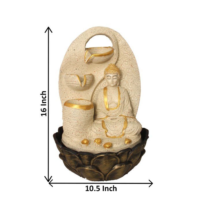 Lord Buddha indoor water fountain is a beautiful showpiece for home decor. This indoor water fountain not only looks great but also brings positivity to your space. Sound effect of water fountain helps create a positive and harmonious environment. As a home decorative water fountain, it adds a touch of elegance and peace to your living space. This Lord Buddha also makes for a wonderful decorative gift item for home decoration, ideal for housewarmings or special occasions. An indoor water fountain is best decoration and thoughtful gift. Whether placed in a living room, home, office, showroom, restaurant, hotel and wedding hall, the gentle sound of flowing water can enhance the beauty of area. As a gift, an indoor water fountain is not only visually appealing but also symbolizes harmony and balance. Water fountain is best ideal decorative gift choice as birthday, housewarming, office / shop inauguration, New Year, Wedding, Corporate Diwali gifts or any occasion.