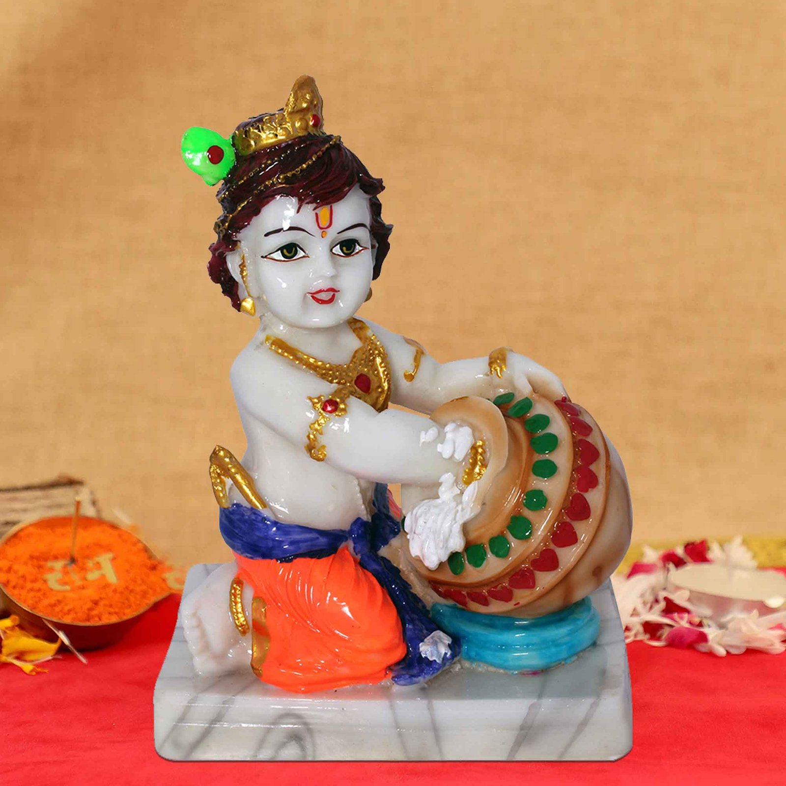 Make in India Makhan Krishna is made by professional artisans using high quality row material. Great look with unfadable color. Showpiece direct from factory at wholesale price This Showpiece is easily cleanable by wet/Dry Cotton Cloth.