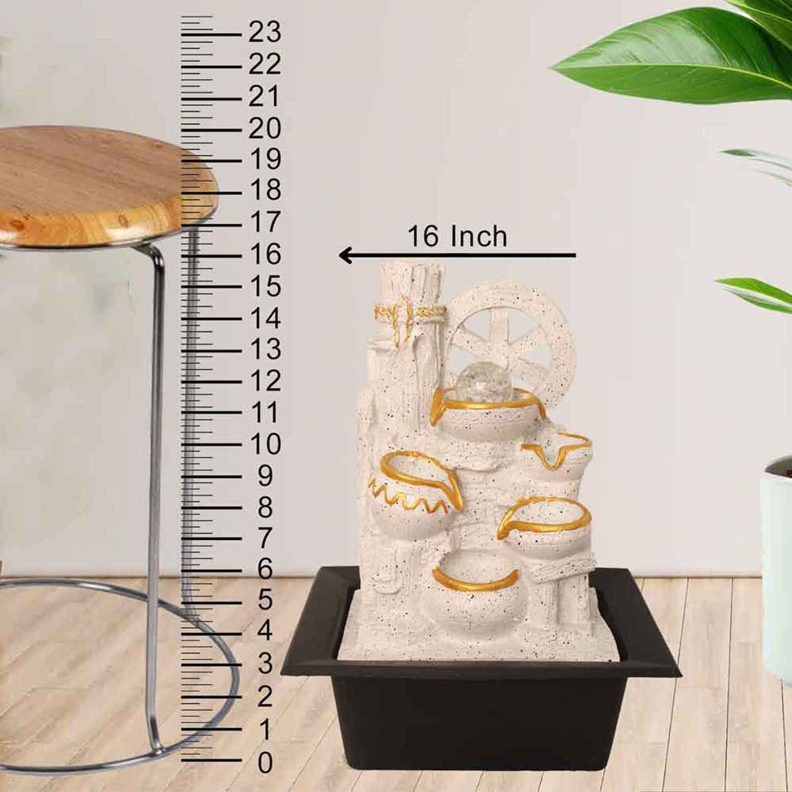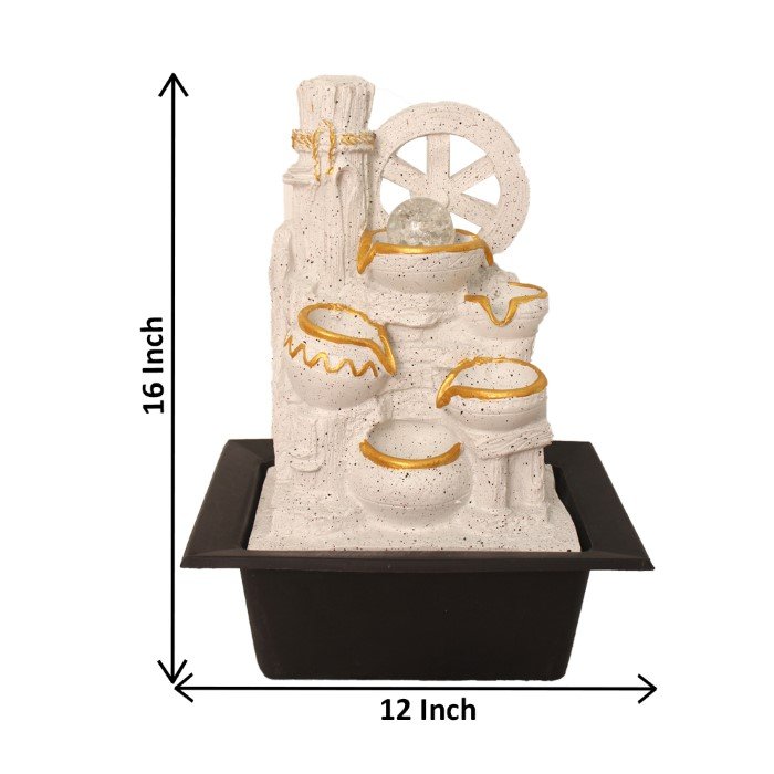Handicraft 5 Steps Diya unique tabletop fountain With Led Light - sandstone Fini...