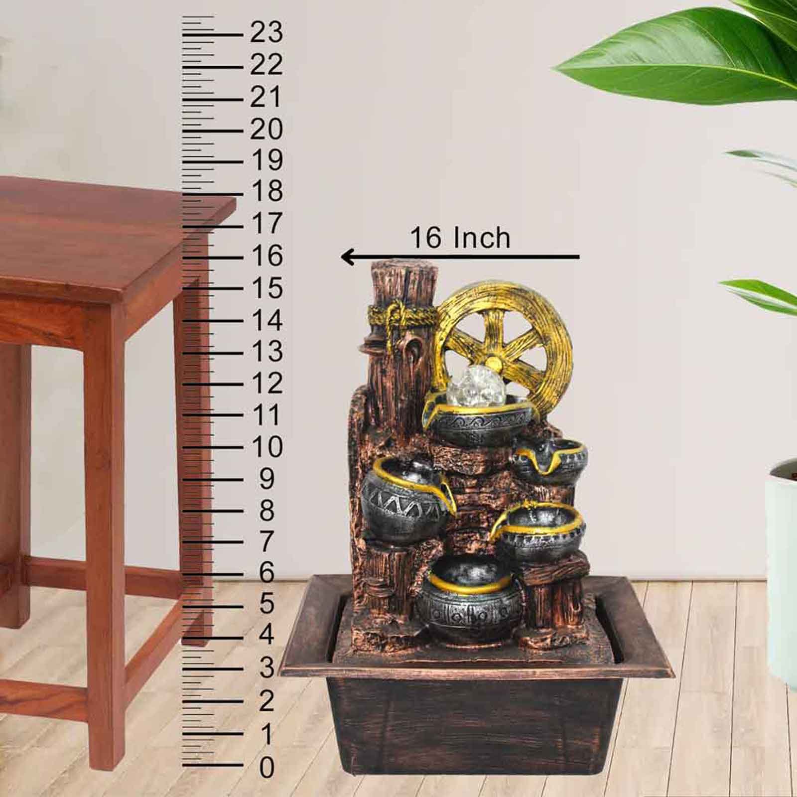 Matkas with Wheel indoor water fountain for home With Led Light & Crystal Ball - Metalic Antique Finish 41 cm G57GX0312MGAMX