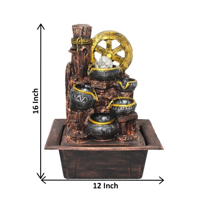 Matkas with Wheel indoor water fountain for home With Led Light & Crystal Ball -...