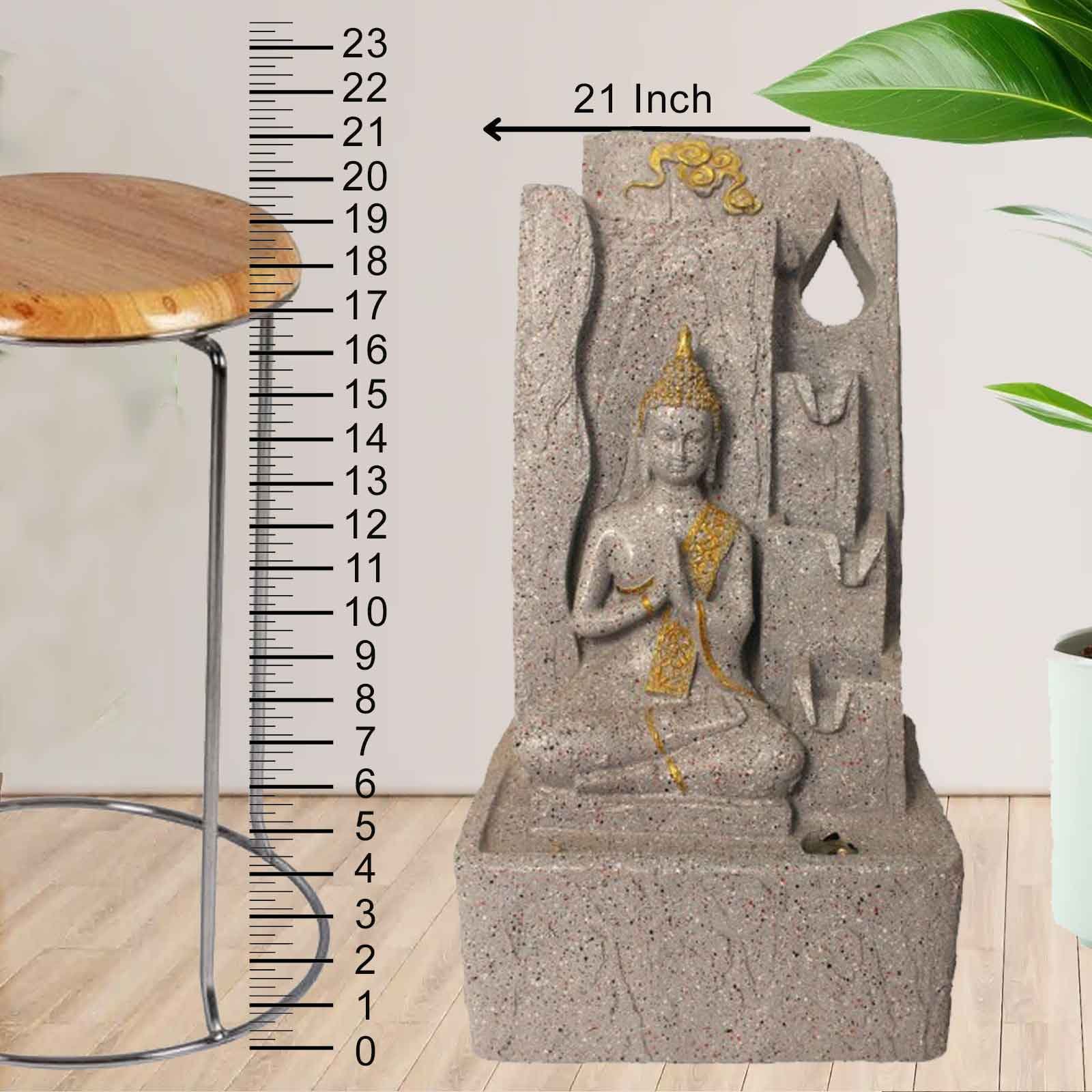 Meditating Buddha Decorative water fountain for house With Led Light - Metalic A...