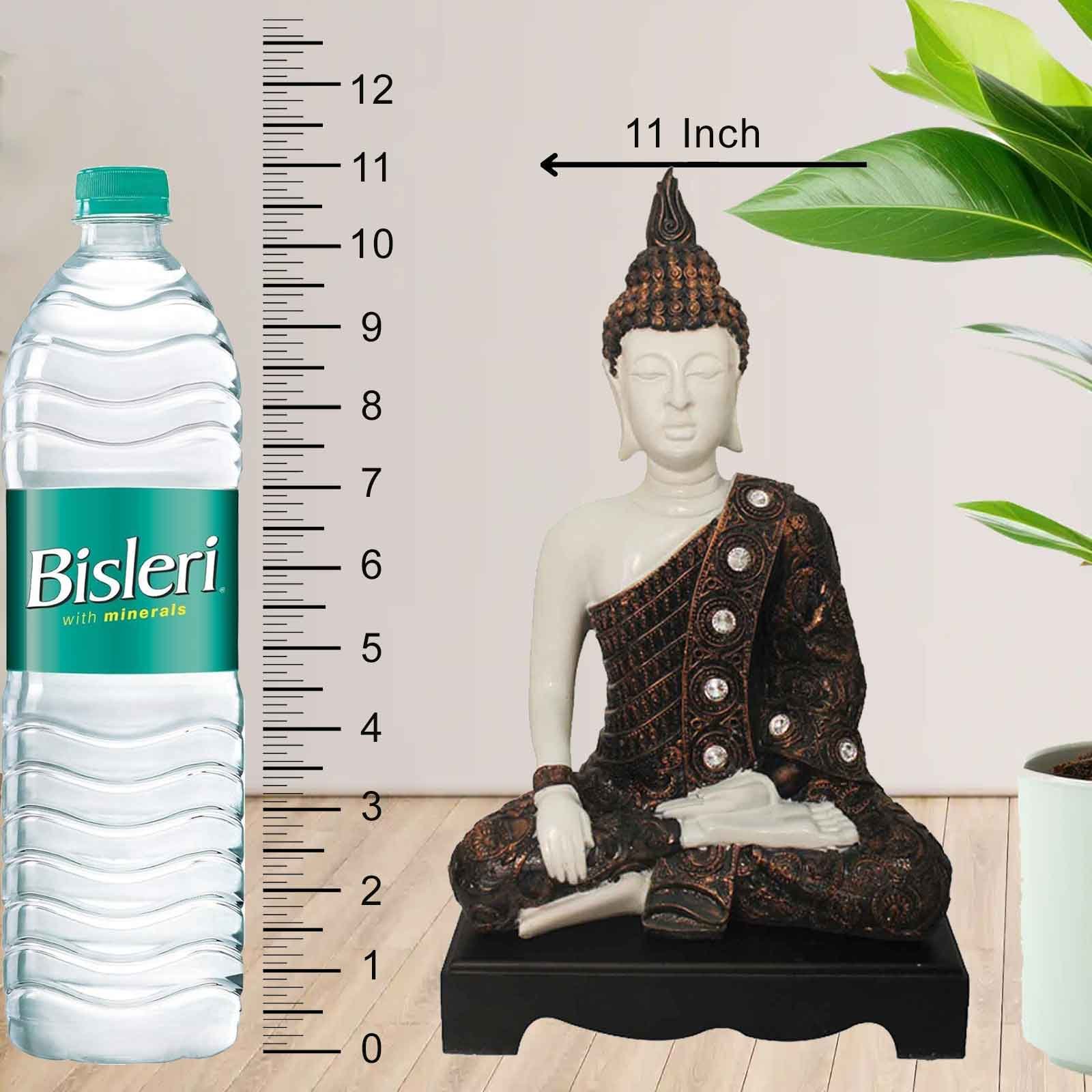 Meditating Gautam Buddha artifacts for office decor Jewellery Decorated with Wooden Base 29 cm G57GW1384WCNGZ