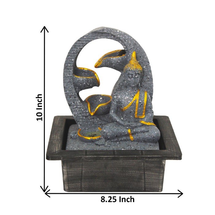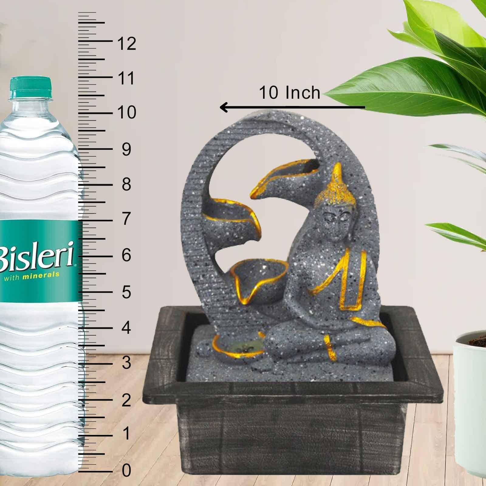 Lord Meditating Diya Buddha indoor water fountain is a beautiful showpiece for home decor. This indoor water fountain not only looks great but also brings positivity to your space. Sound effect of water fountain helps create a positive and harmonious environment. As a home decorative water fountain, it adds a touch of elegance and peace to your living space. This Lord Buddha also makes for a wonderful decorative gift item for home decoration, ideal for housewarmings or special occasions. An indoor water fountain is best decoration and thoughtful gift. Whether placed in a living room, home, office, showroom, restaurant, hotel and wedding hall, the gentle sound of flowing water can enhance the beauty of area. As a gift, an indoor water fountain is not only visually appealing but also symbolizes harmony and balance. Water fountain is best ideal decorative gift choice as birthday, housewarming, office / shop inauguration, New Year, Wedding, Corporate Diwali gifts or any occasion.