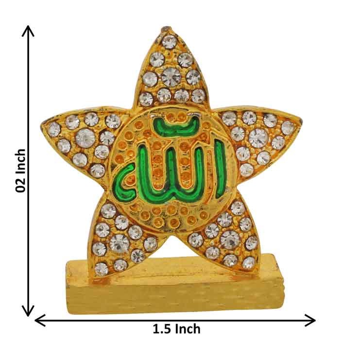 Make in India Metallic Allah Sign Statue is made by professional artisans using high quality row material. Great look with unfadable color. Showpiece direct from factory at wholesale price This Showpiece is easily cleanable by wet/Dry Cotton Cloth.
