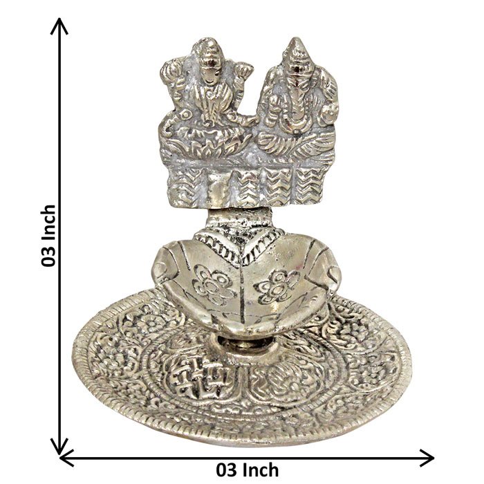 Metallic Laxmi Ganesh Diya for pooja and Diwali Gift 7 cm G27GX0116S