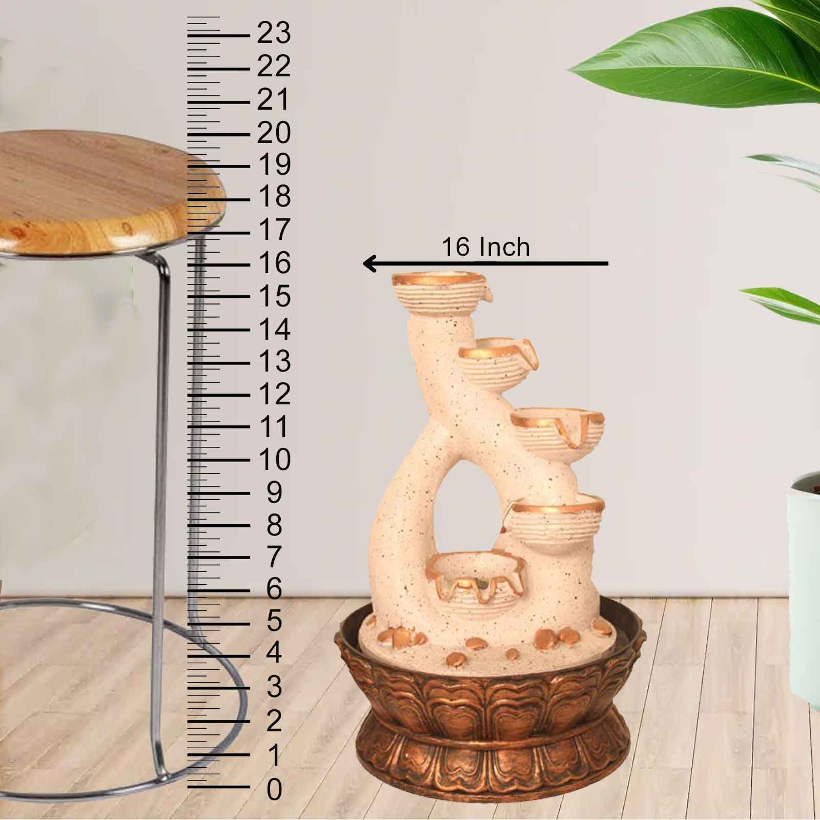 Handicraft 5 Steps Diya unique tabletop fountain With Led Light - sandstone Fini...