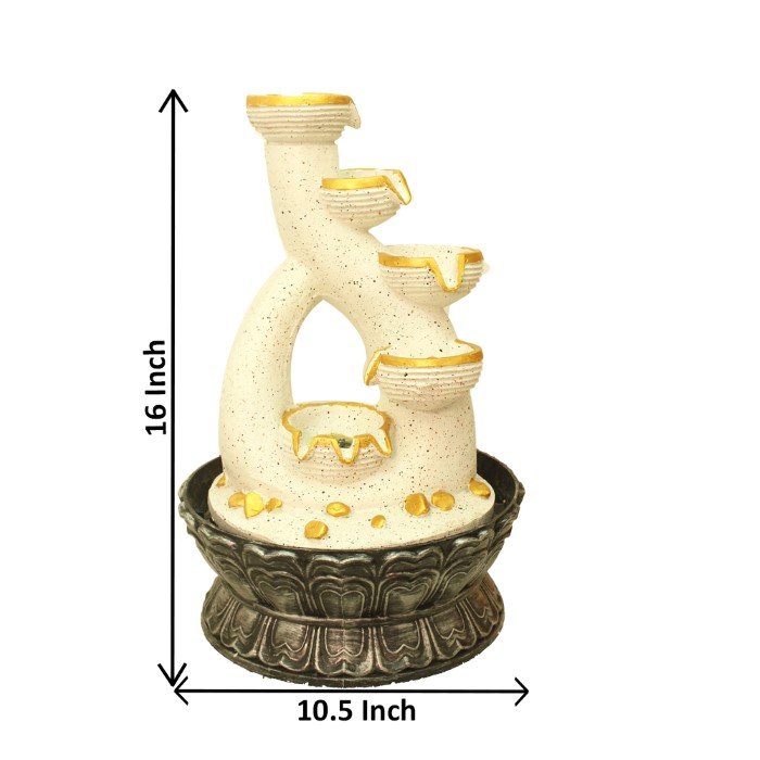 5 steps Decorative Diya indoor water fountain is a beautiful showpiece for home decor. This indoor water fountain not only looks great but also brings positivity to your space. Sound effect of water fountain helps create a positive and harmonious environment. As a home decorative water fountain, it adds a touch of elegance and peace to your living space. This Decorative Diya also makes for a wonderful decorative gift item for home decoration, ideal for housewarmings or special occasions. An indoor water fountain is best decoration and thoughtful gift. Whether placed in a living room, home, office, showroom, restaurant, hotel and wedding hall, the gentle sound of flowing water can enhance the beauty of area. As a gift, an indoor water fountain is not only visually appealing but also symbolizes harmony and balance. Water fountain is best ideal decorative gift choice as birthday, housewarming, office / shop inauguration, New Year, Wedding, Corporate Diwali gifts or any occasion.
