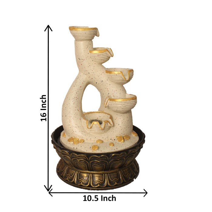 5 steps Decorative Diya indoor water fountain is a beautiful showpiece for home decor. This indoor water fountain not only looks great but also brings positivity to your space. Sound effect of water fountain helps create a positive and harmonious environment. As a home decorative water fountain, it adds a touch of elegance and peace to your living space. This Decorative Diya also makes for a wonderful decorative gift item for home decoration, ideal for housewarmings or special occasions. An indoor water fountain is best decoration and thoughtful gift. Whether placed in a living room, home, office, showroom, restaurant, hotel and wedding hall, the gentle sound of flowing water can enhance the beauty of area. As a gift, an indoor water fountain is not only visually appealing but also symbolizes harmony and balance. Water fountain is best ideal decorative gift choice as birthday, housewarming, office / shop inauguration, New Year, Wedding, Corporate Diwali gifts or any occasion.