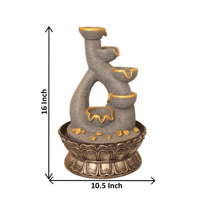 5 steps Decorative Diya indoor water fountain is a beautiful showpiece for home decor. This indoor water fountain not only looks great but also brings positivity to your space. Sound effect of water fountain helps create a positive and harmonious environment. As a home decorative water fountain, it adds a touch of elegance and peace to your living space. This Decorative Diya also makes for a wonderful decorative gift item for home decoration, ideal for housewarmings or special occasions. An indoor water fountain is best decoration and thoughtful gift. Whether placed in a living room, home, office, showroom, restaurant, hotel and wedding hall, the gentle sound of flowing water can enhance the beauty of area. As a gift, an indoor water fountain is not only visually appealing but also symbolizes harmony and balance. Water fountain is best ideal decorative gift choice as birthday, housewarming, office / shop inauguration, New Year, Wedding, Corporate Diwali gifts or any occasion.