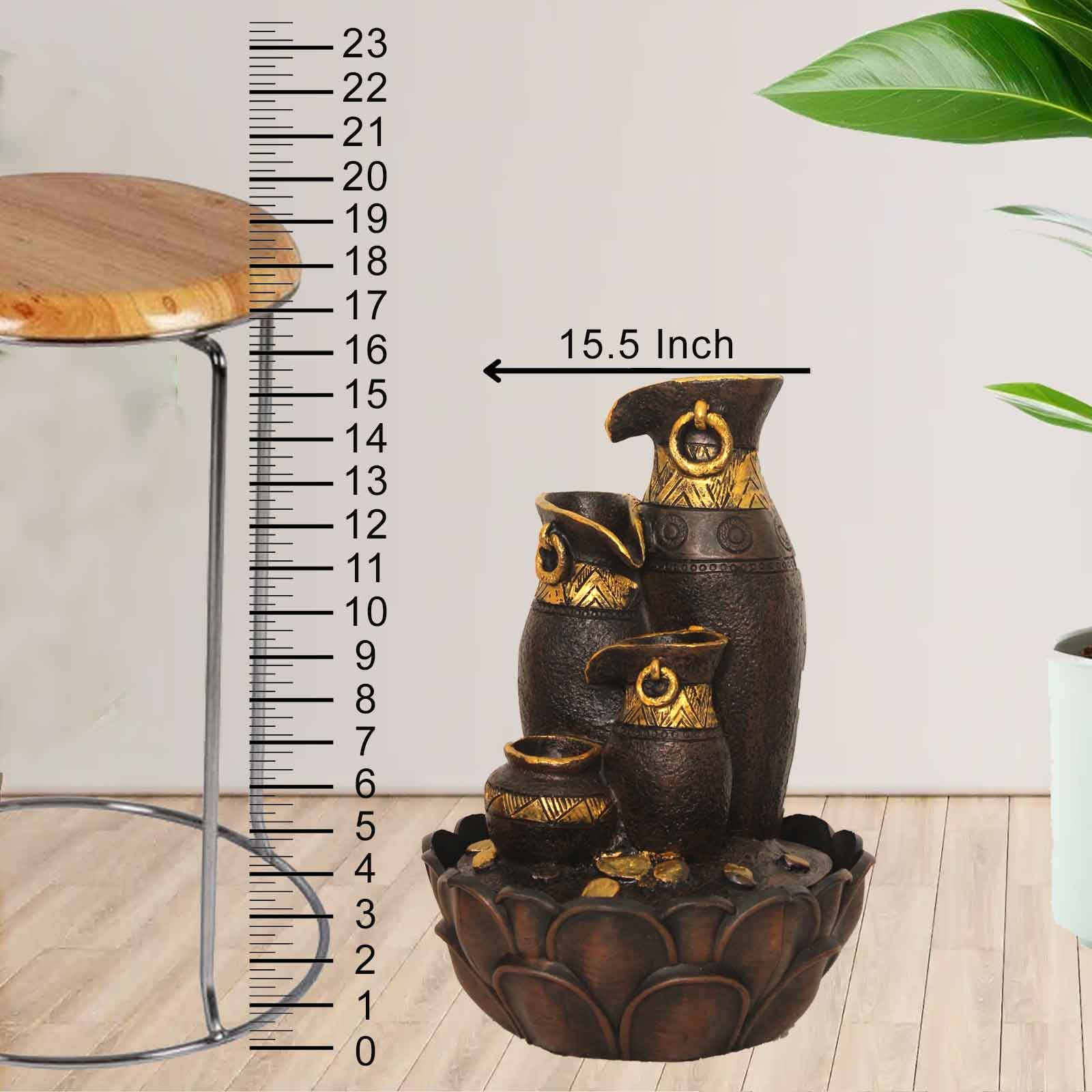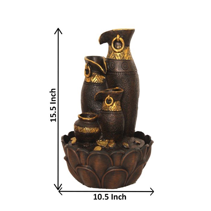 Tabletop Diya water fountain statues With Led Light - Metalic Antique Finish 41 ...