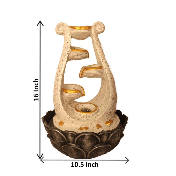 Handicraft 5 Steps Diya unique tabletop fountain With Led Light - sandstone Fini...