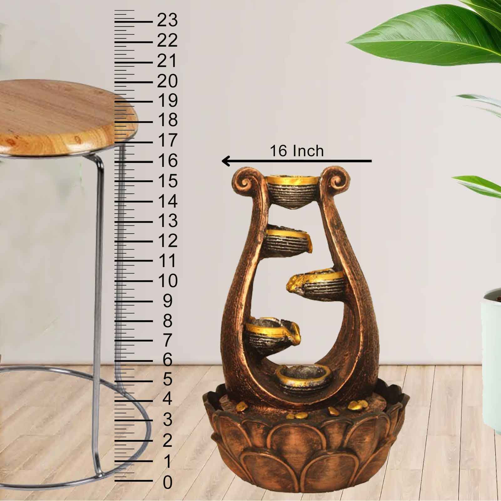 Diya Showpiece Small Water fountain for living room With Led Light - Metalic Ant...