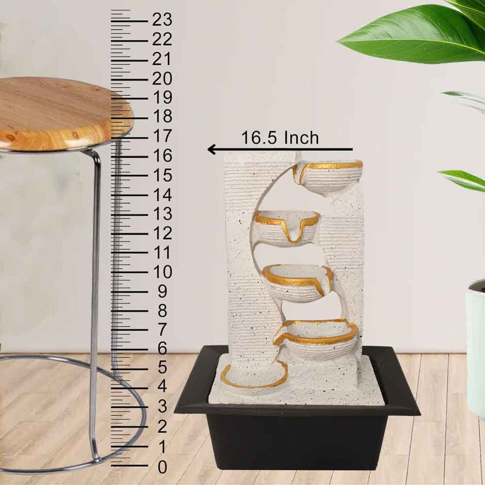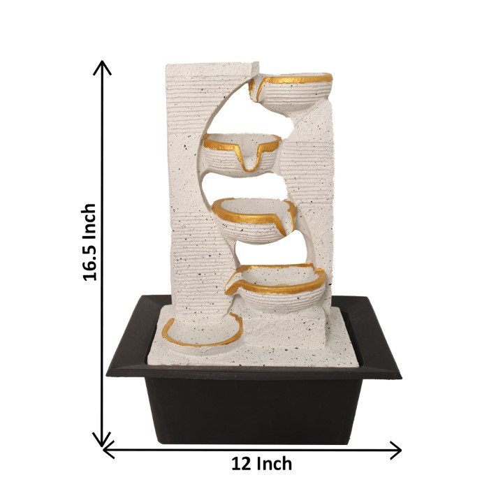 4 Tier Modern Art Diya indoor water fountain is a beautiful showpiece for home decor. This indoor water fountain not only looks great but also brings positivity to your space. Sound effect of water fountain helps create a positive and harmonious environment. As a home decorative water fountain, it adds a touch of elegance and peace to your living space. This 4 Tier Modern Art Diya also makes for a wonderful decorative gift item for home decoration, ideal for housewarmings or special occasions. An indoor water fountain is best decoration and thoughtful gift. Whether placed in a living room, home, office, showroom, restaurant, and Hotel, the gentle sound of flowing water can enhance the beauty of area. As a gift, an indoor water fountain is not only visually appealing but also symbolizes harmony and balance. Water fountain is best ideal decorative gift choice as birthday, housewarming, office / shop inauguration, New Year, Wedding, Corporate Diwali gifts or any occasion.