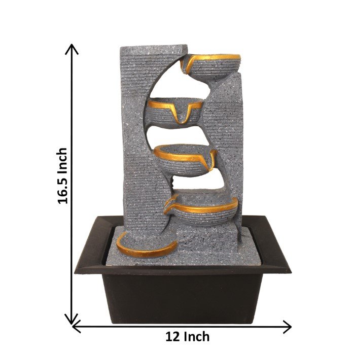 Decorative 4 Step Bowl fountain showpiece With Led Light - Metalic Antique Finis...