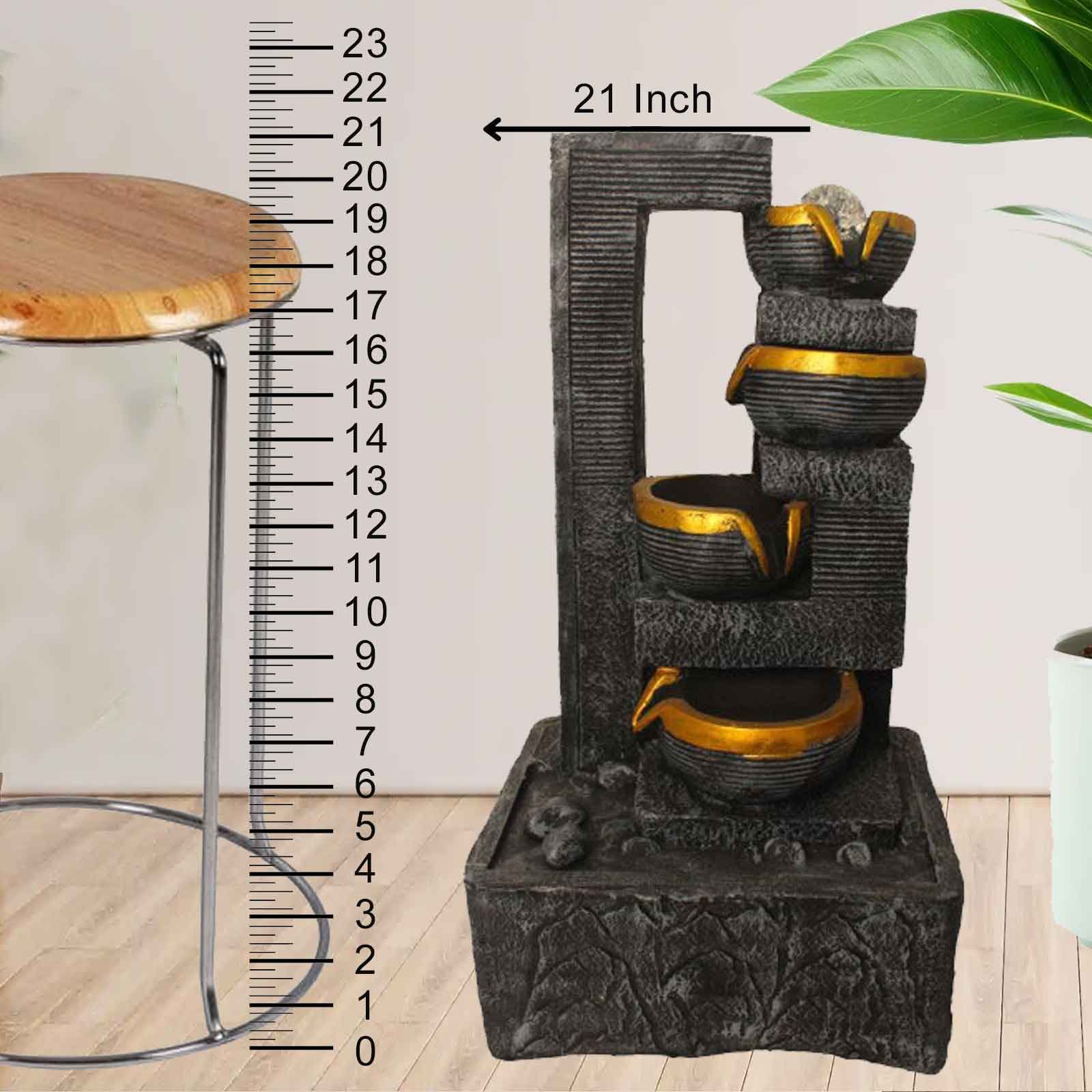 Handicraft 5 Steps Diya unique tabletop fountain With Led Light - sandstone Fini...