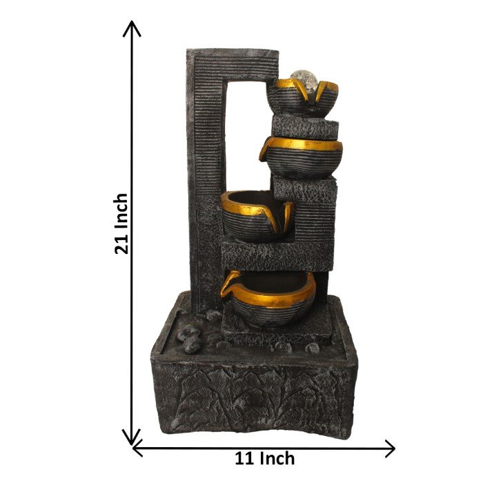 Showpiece Diya Large Size Tabletop water fountain With Led Light - Metalic Antiq...