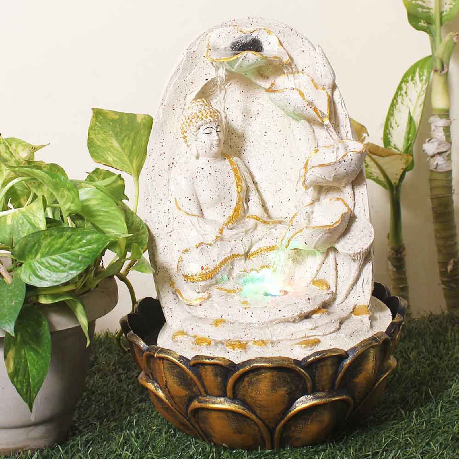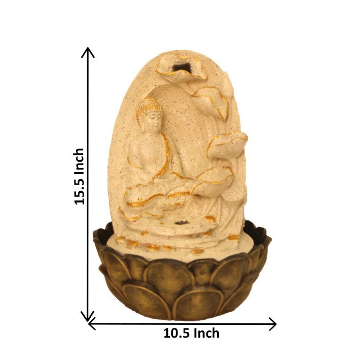 Floral Art Buddha water fountain for living room With Led Light - Metalic Antiqu...