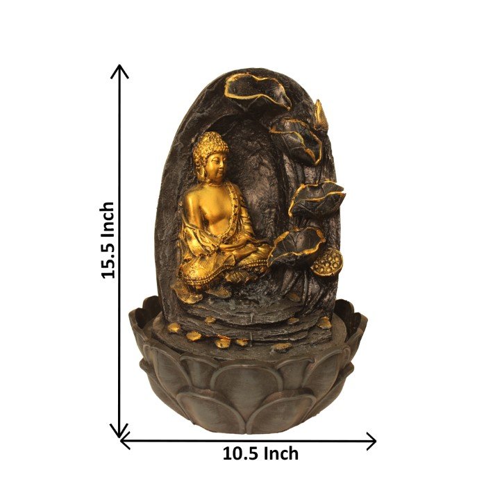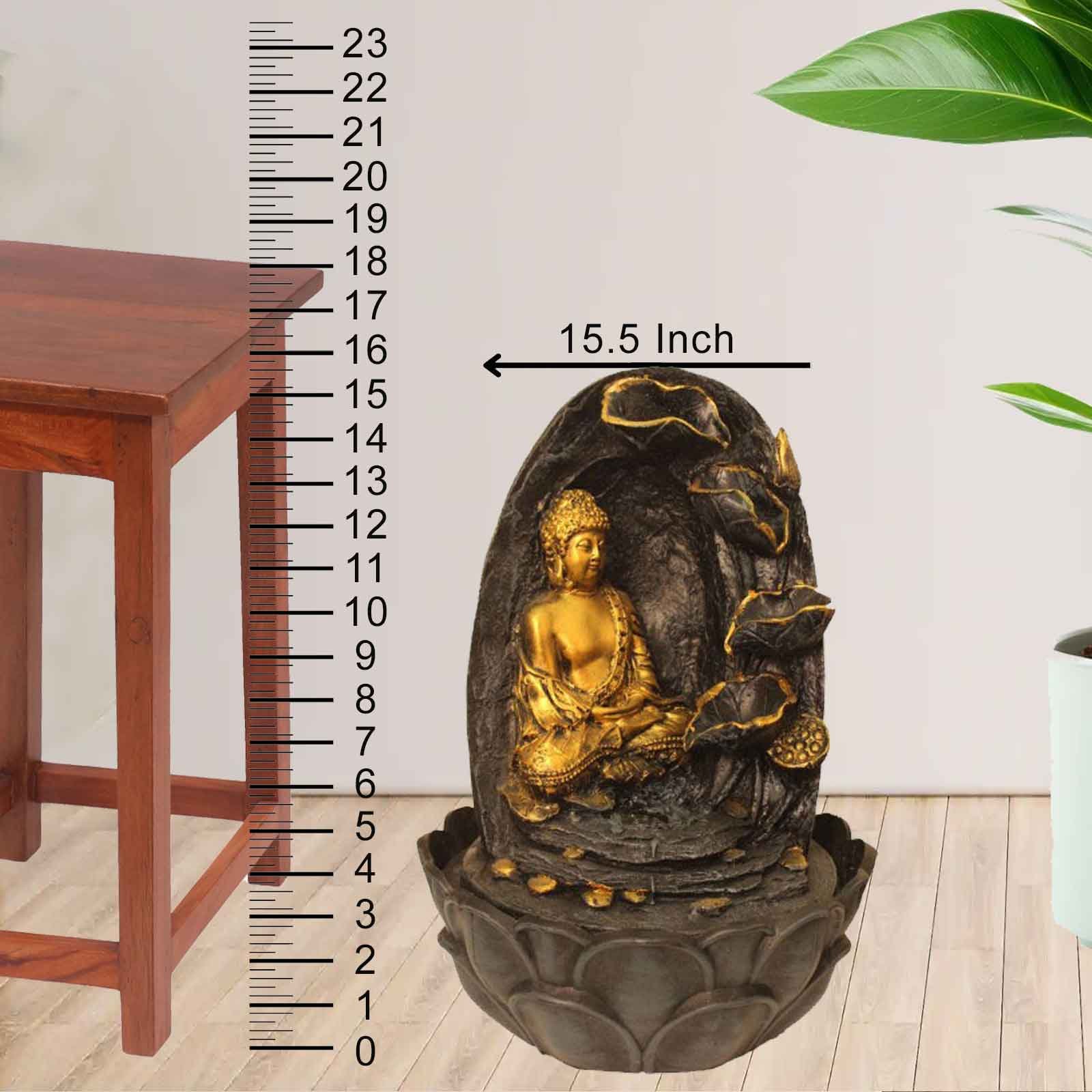 Modern Art Floral Buddha indoor water fountain for home decor With Led Light - Metalic Antique Finish 39 cm G57GX0036FGAMX