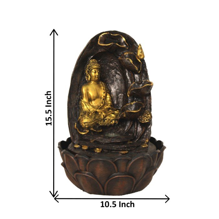 Modern Art Floral Buddha indoor water fountain for home With Led Light - Metalic Antique Finish 39 cm G57GX0036AGAMX