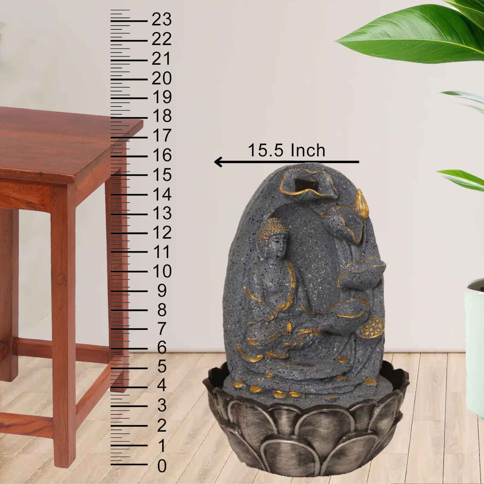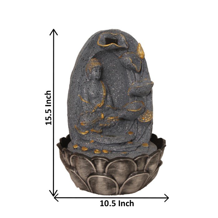 Buddha Sitting on Pahad tabletop waterfall fountain With Led Light - Metalic Ant...