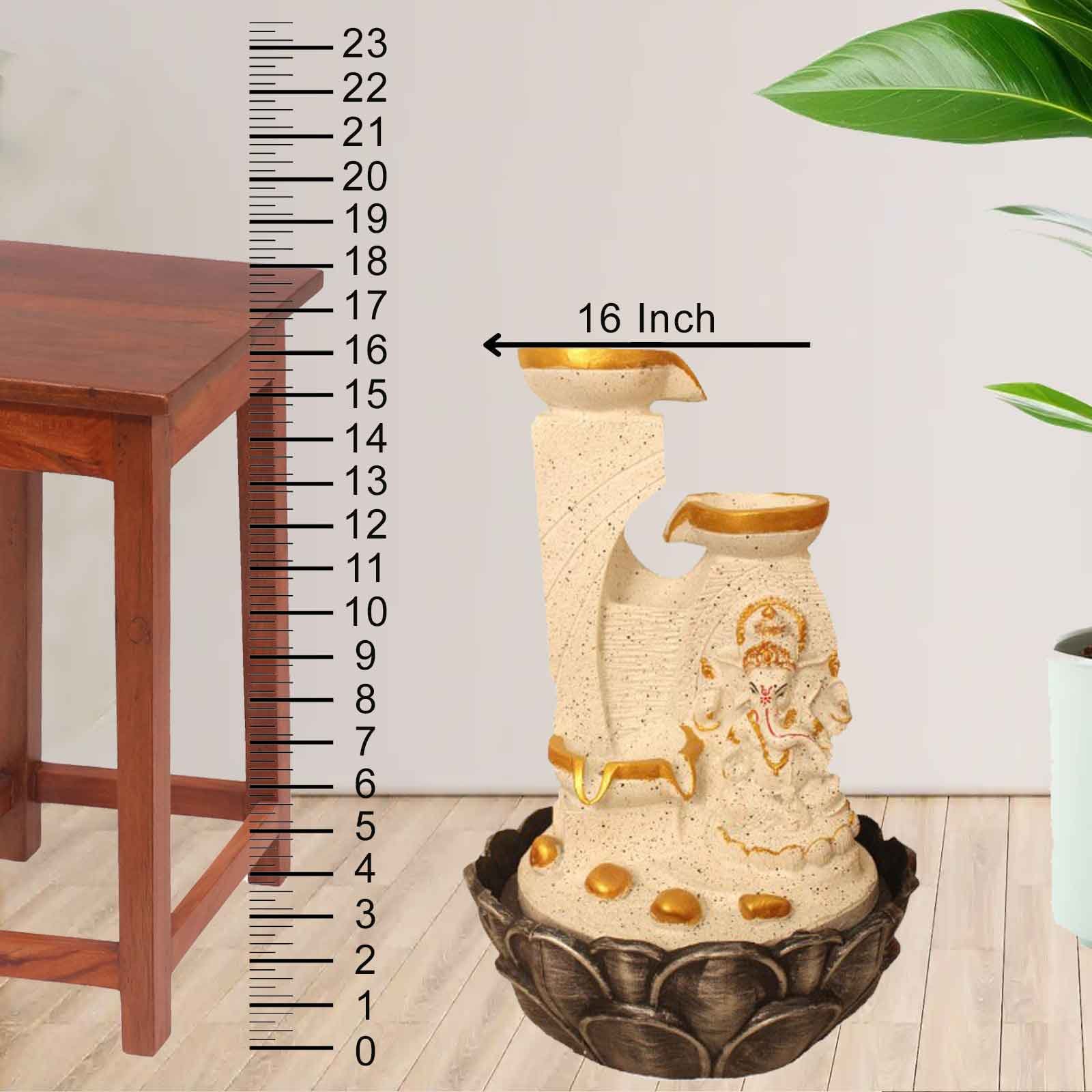 Polyresin Lord Ganesha Small water fountain for office With Led Light - sandston...