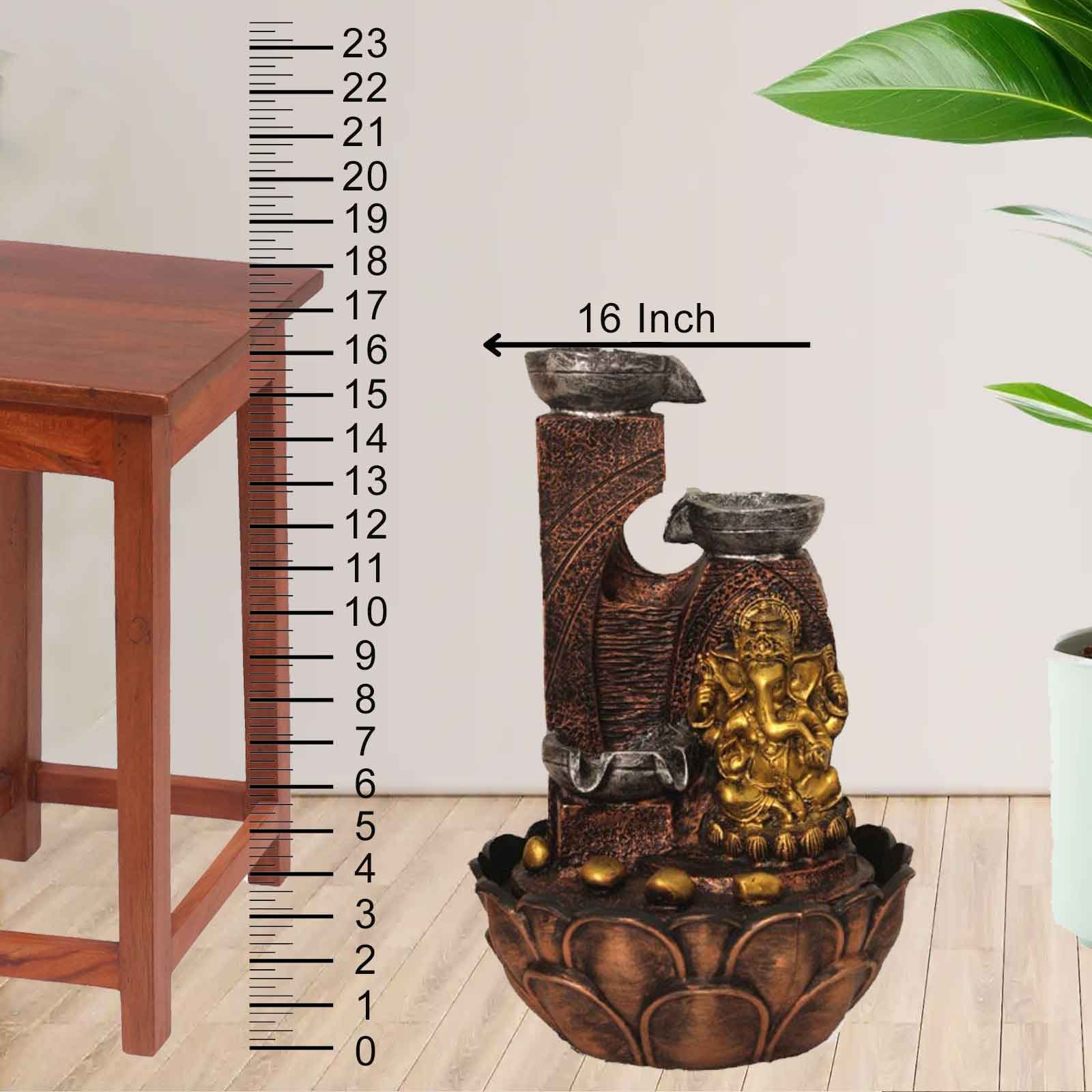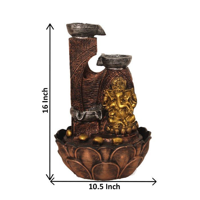 Ganpati Diya indoor waterfall for home With Led Light - sandstone Finish 25 cm G...
