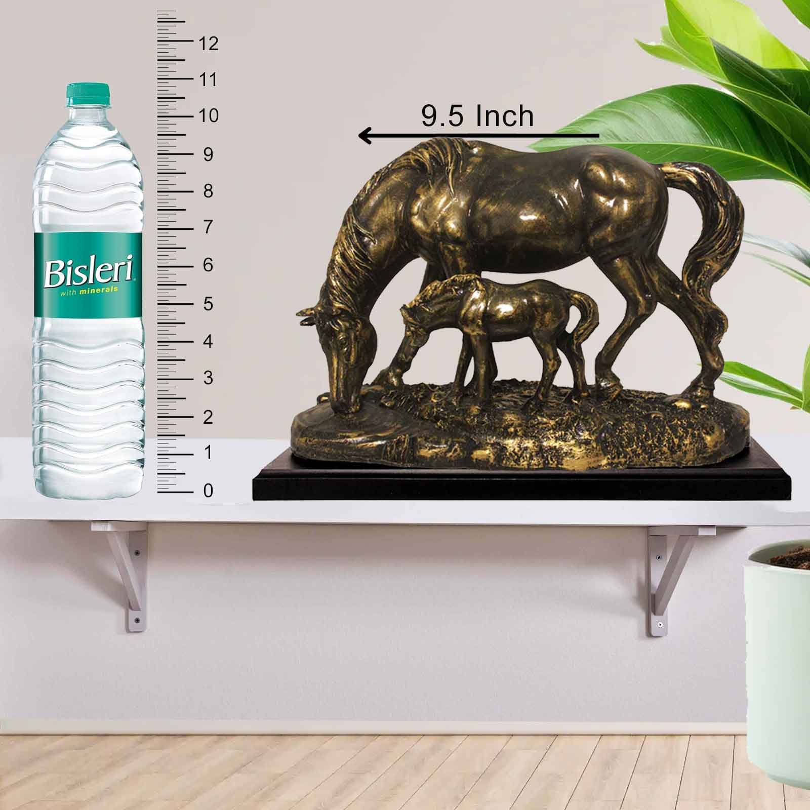 Mother and Baby Horse artifacts for bedroom Brass Antique Finish with Wooden Base 24 cm G57GW1087BBAGX