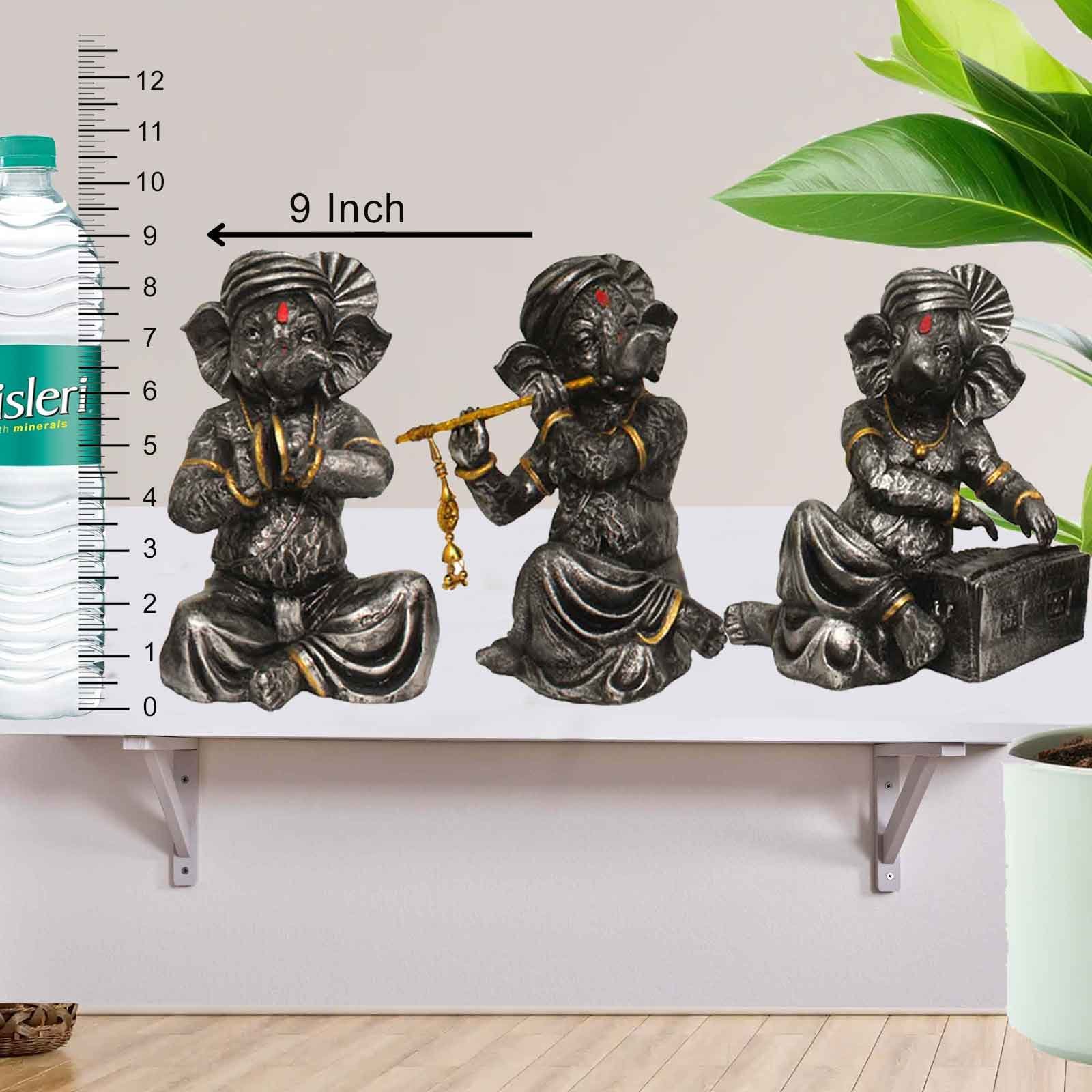 Lord Murli Ganesha artifacts for tv unit Silver Antique Finish 23 cm G57GX1106SS...