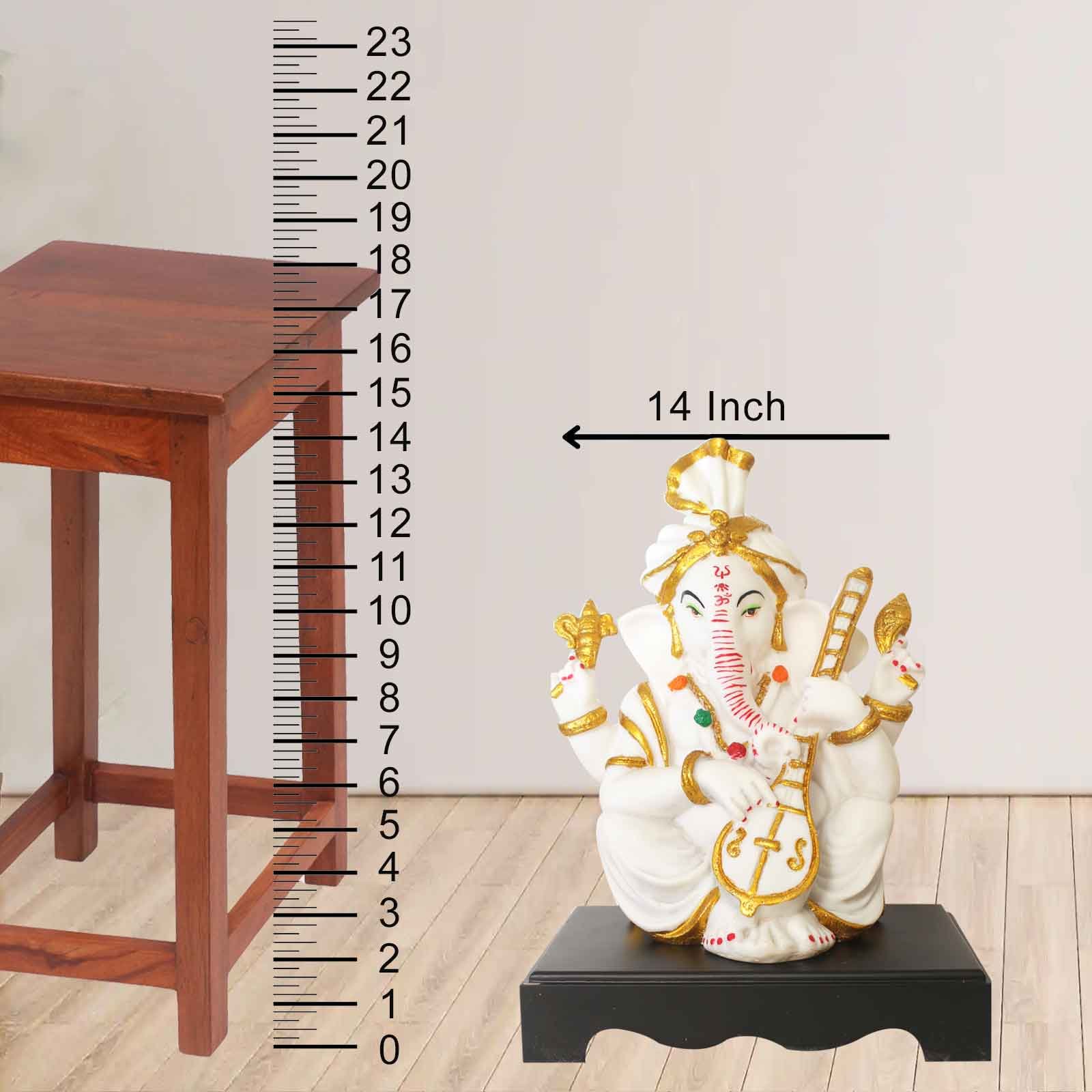 Musical Pagdi Ganesh figures for home decor Marble Look with Wooden Base 36 cm G57GW1268WGCMX