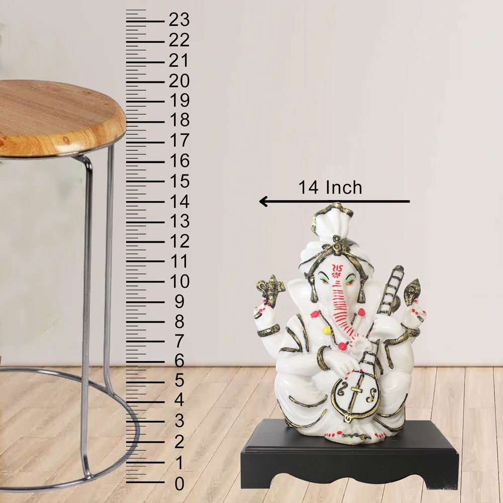 Musical Pagdi Ganesh sculpture for decoration Marble Look with Wooden Base 36 cm G57GW1268WBCGX