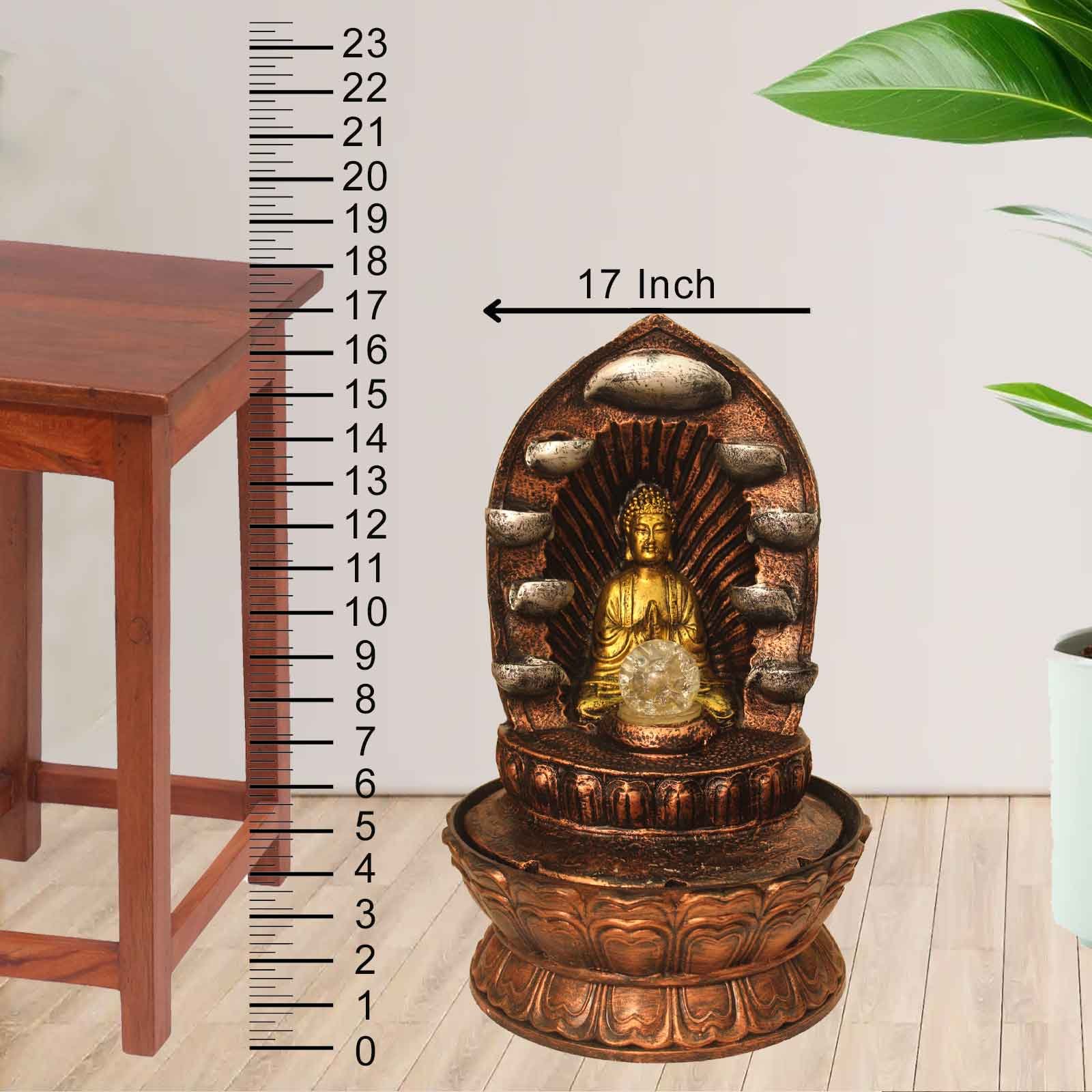 Namaskar Buddha decorative fountain indoor Waterfall With Led Light & Crystal Ball - Metalic Antique Finish 43 cm G57GX0522MGAMX