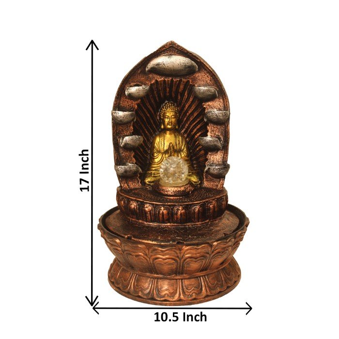 Lord Gautam Buddha house water fountain With Led Light - Metalic Antique Finish ...