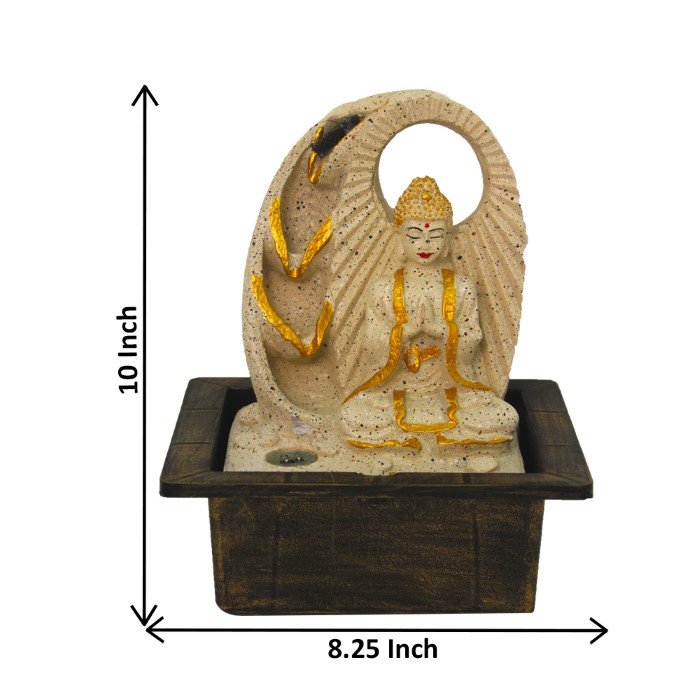 Lord Buddha indoor water fountain is a beautiful showpiece for home decor. This indoor water fountain not only looks great but also brings positivity to your space. Sound effect of water fountain helps create a positive and harmonious environment. As a home decorative water fountain, it adds a touch of elegance and peace to your living space. This Lord Buddha also makes for a wonderful decorative gift item for home decoration, ideal for housewarmings or special occasions. An indoor water fountain is best decoration and thoughtful gift. Whether placed in a living room, home, office, showroom, restaurant, hotel and wedding hall, the gentle sound of flowing water can enhance the beauty of area. As a gift, an indoor water fountain is not only visually appealing but also symbolizes harmony and balance. Water fountain is best ideal decorative gift choice as birthday, housewarming, office / shop inauguration, New Year, Wedding, Corporate Diwali gifts or any occasion.
