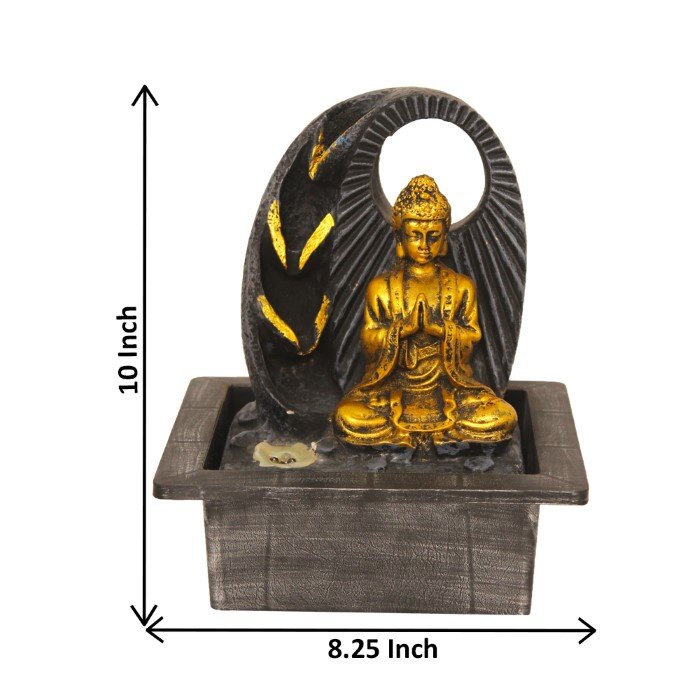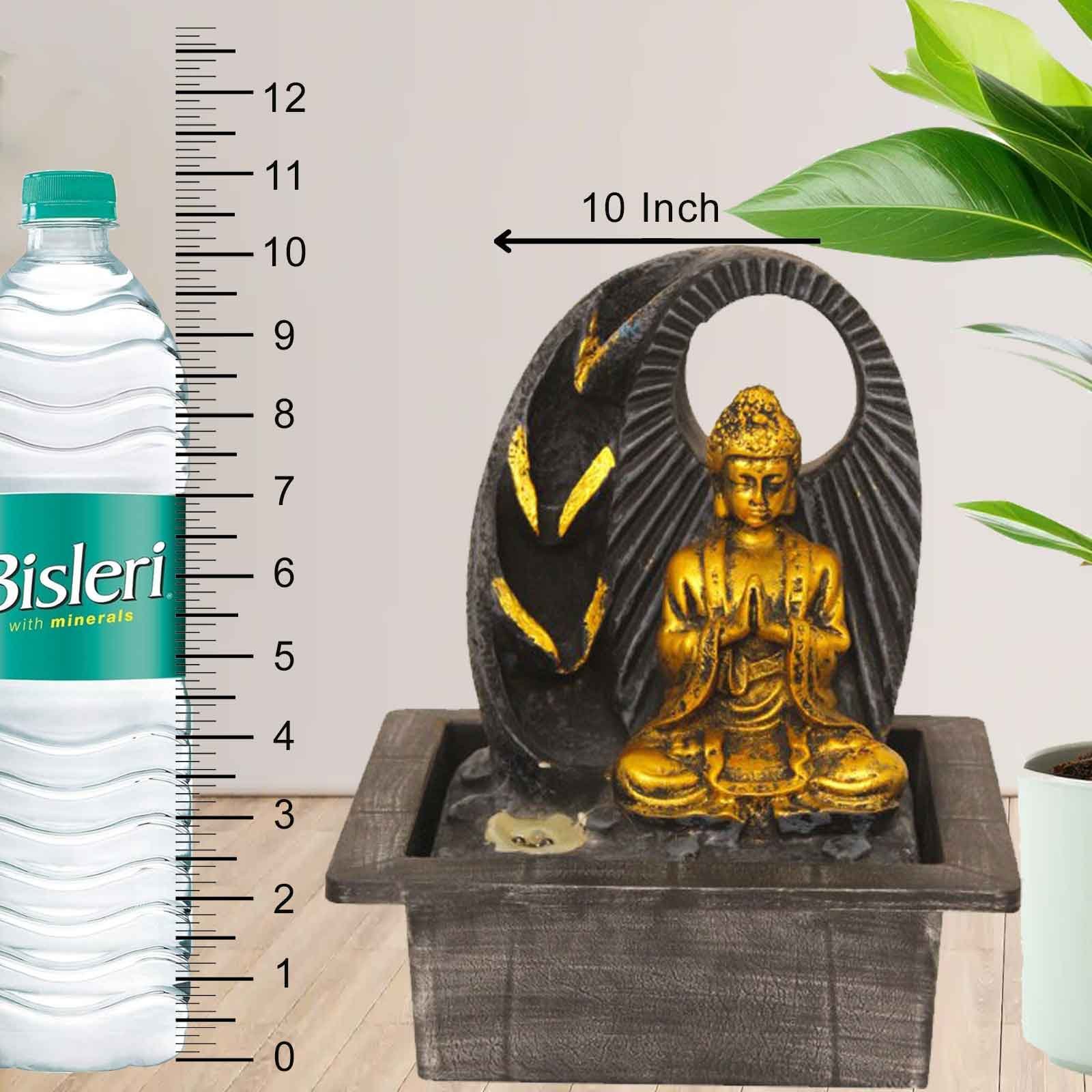 Pranam Buddha water fountain indoor vastu Large Size With Led Light - Metalic An...