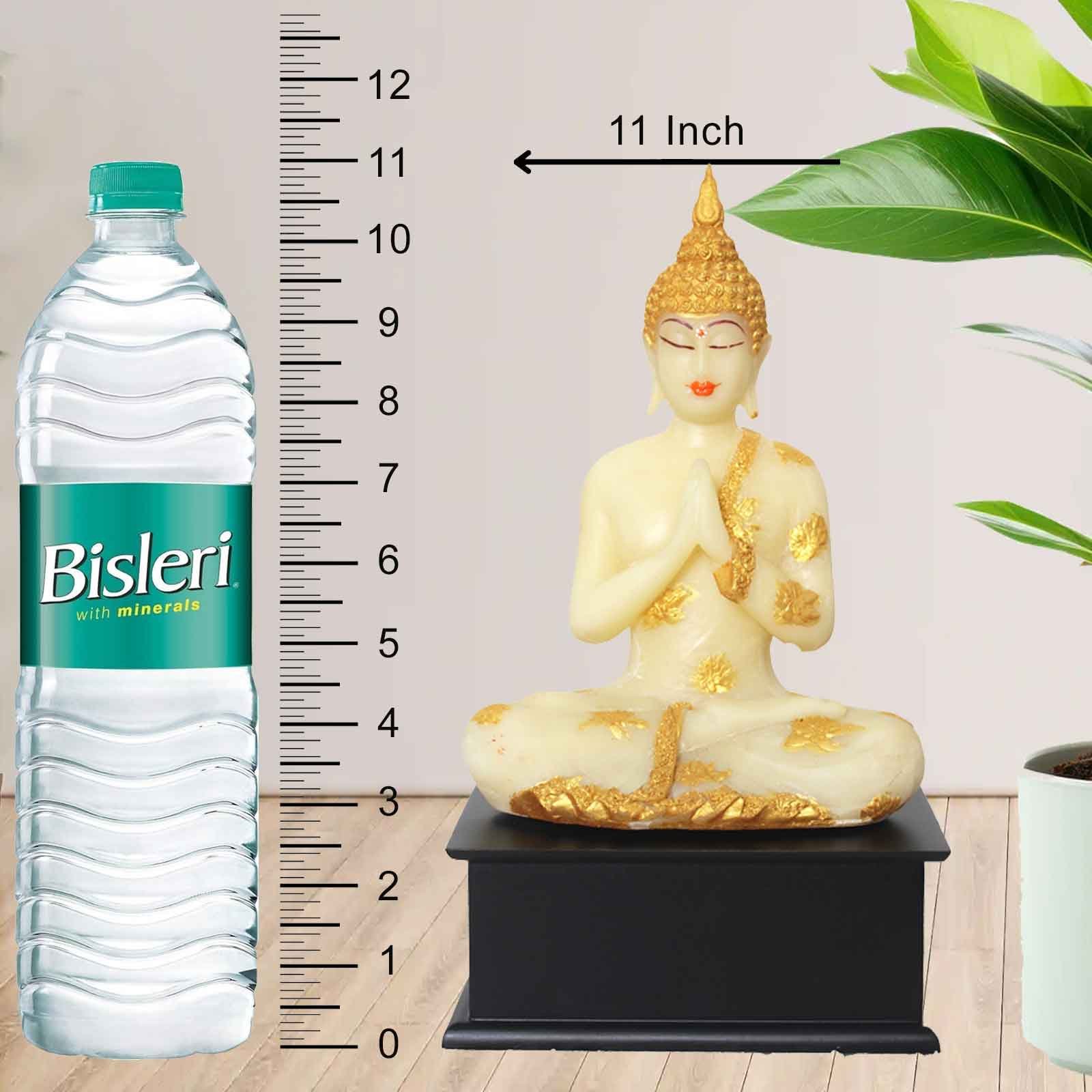 Namaste Buddha showpiece for home Marble Look with Wooden Base 28 cm G57GW1518WGCGX