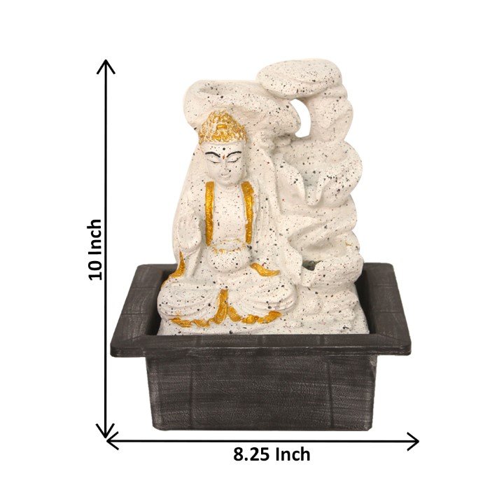 Blessing Buddha indoor water fountain is a beautiful showpiece for home decor. This indoor water fountain not only looks great but also brings positivity to your space. Sound effect of water fountain helps create a positive and harmonious environment. As a home decorative water fountain, it adds a touch of elegance and peace to your living space. This Blessing Buddha also makes for a wonderful decorative gift item for home decoration, ideal for housewarmings or special occasions. An indoor water fountain is best decoration and thoughtful gift. Whether placed in a living room, home, office, showroom, restaurant, hotel and wedding hall, the gentle sound of flowing water can enhance the beauty of area. As a gift, an indoor water fountain is not only visually appealing but also symbolizes harmony and balance. Water fountain is best ideal decorative gift choice as birthday, housewarming, office / shop inauguration, New Year, Wedding, Corporate Diwali gifts or any occasion.