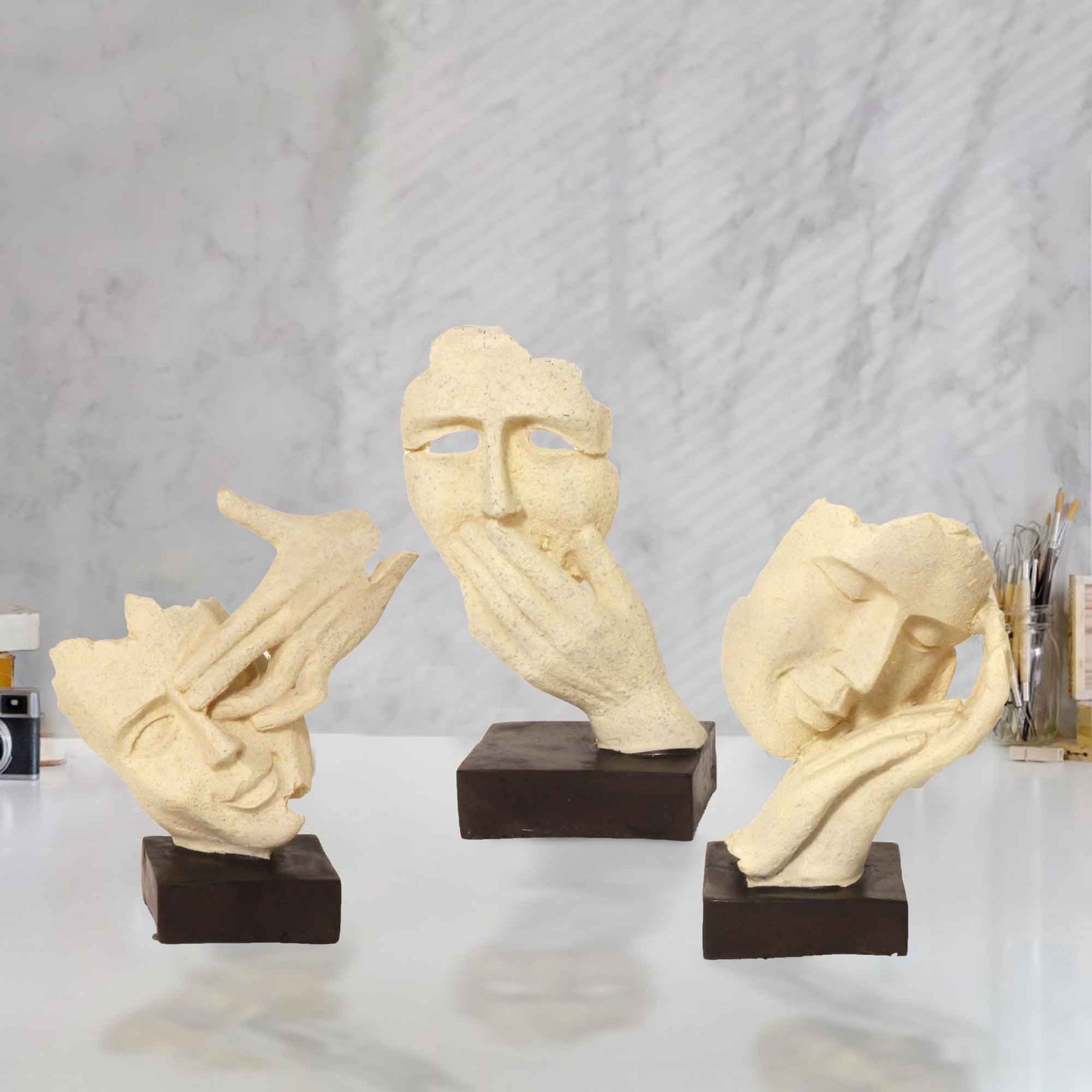 Make in India Pair of 3 Faces is made by professional artisans using high quality row material. Great look with unfadable color. Showpiece direct from factory at wholesale price This Showpiece is easily cleanable by wet/Dry Cotton Cloth.