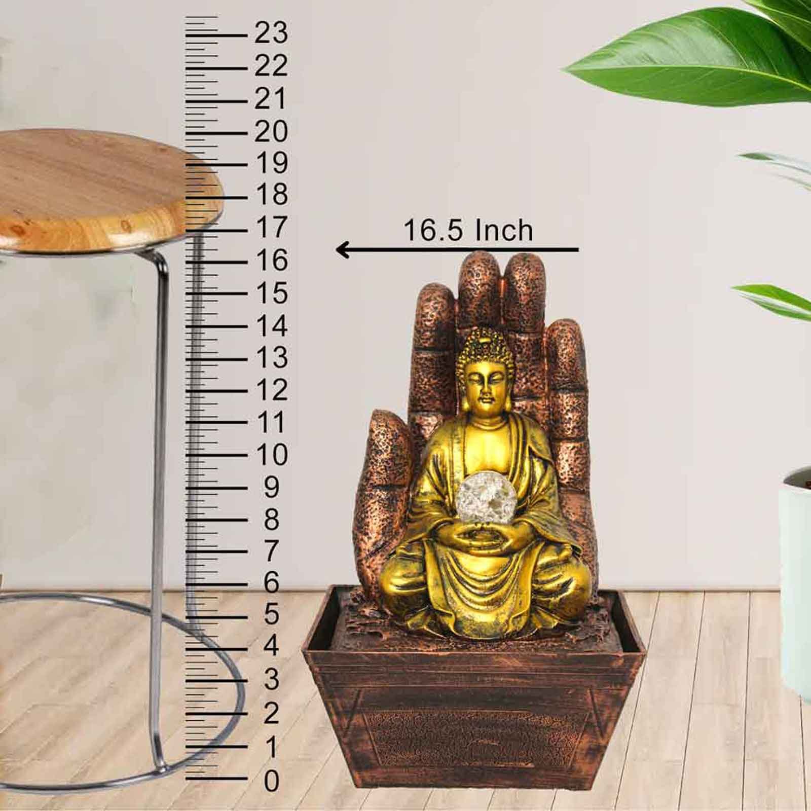 Palm Buddha fountain for home With Led Light & Crystal Ball - Metalic Antique Finish 42 cm G57GX0314MGAMX