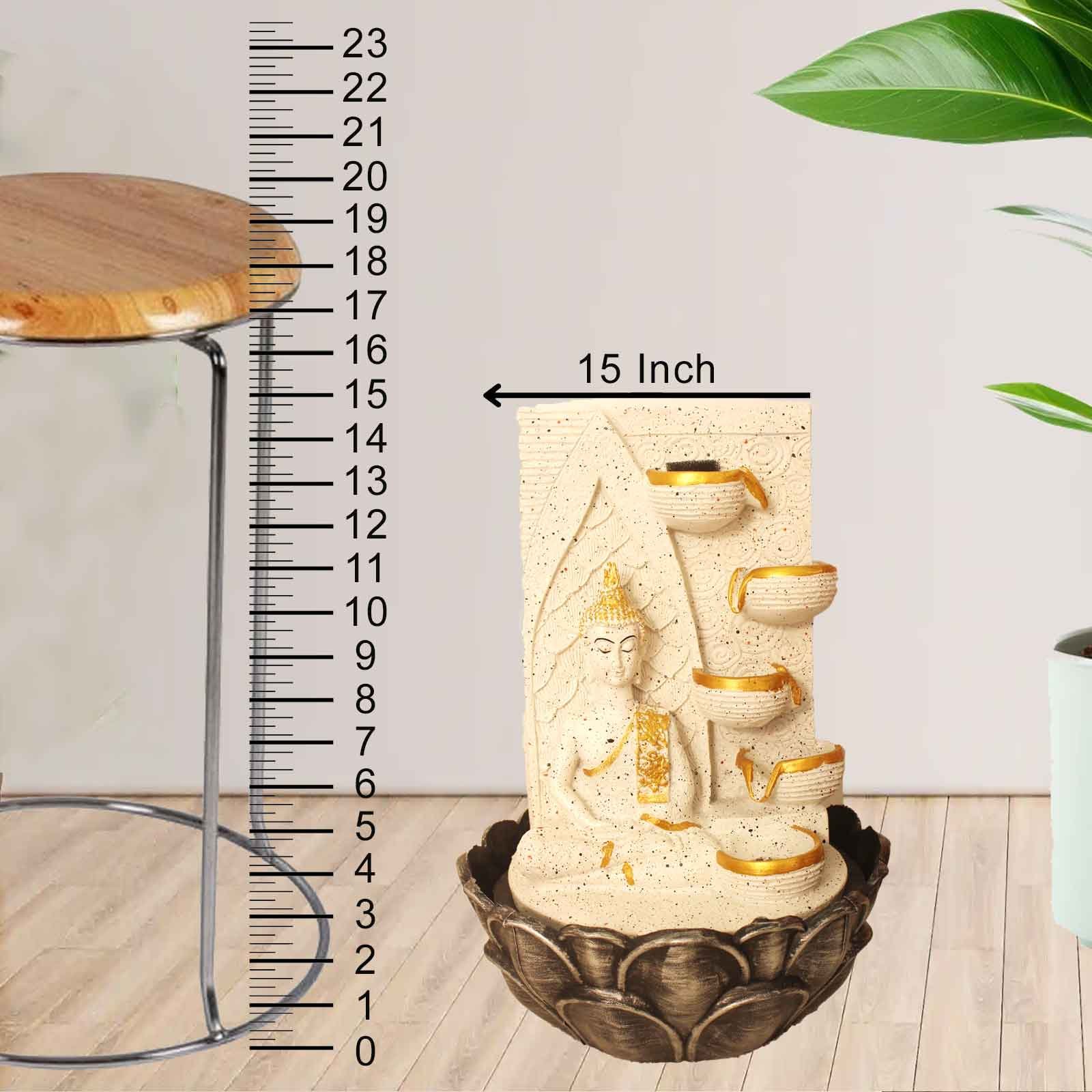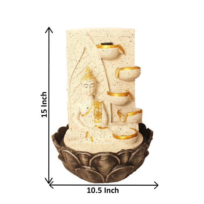 Lord Gautam Buddha waterfall fountain With Led Light - sandstone Finish 27 cm G5...