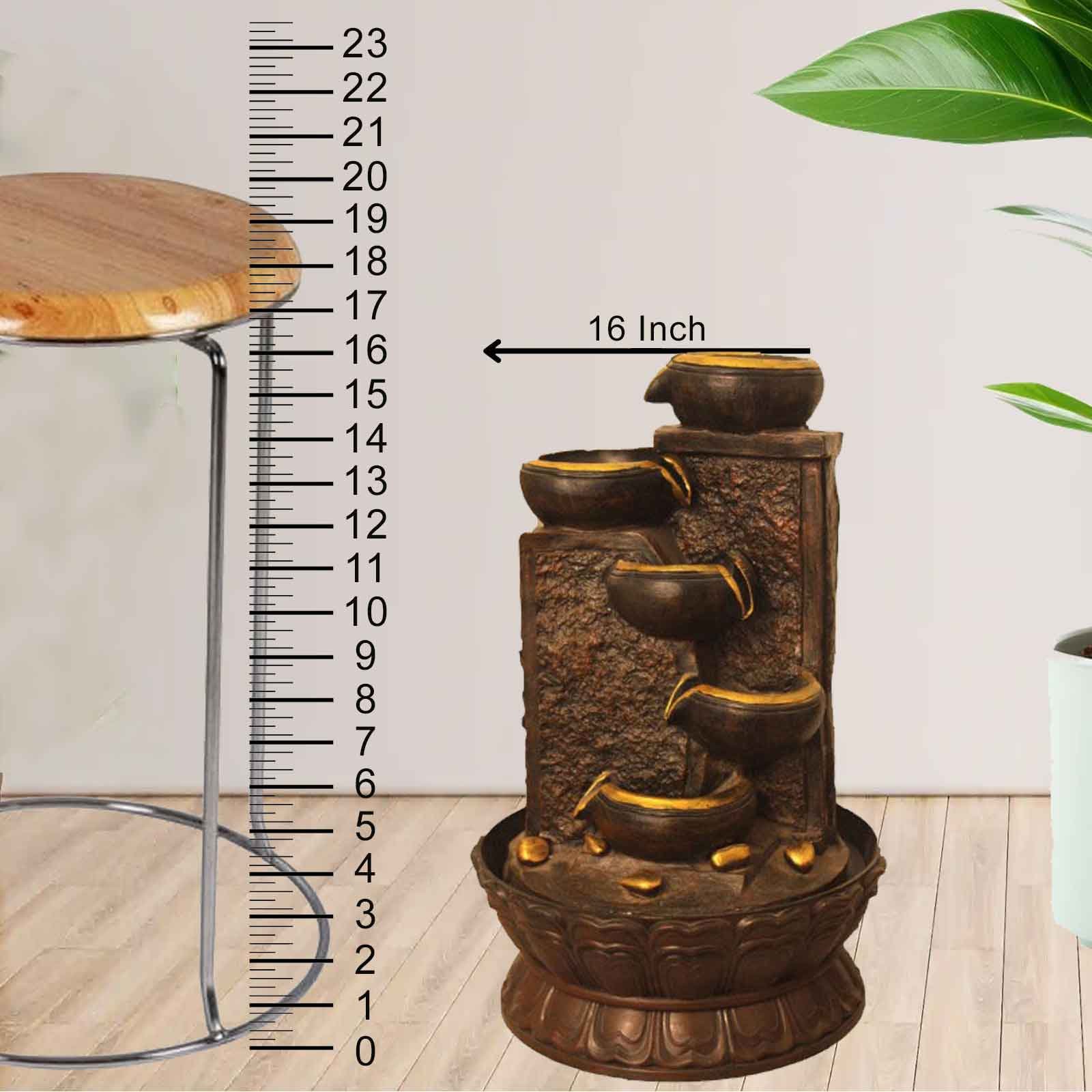 Bowl Waterfall Big water fountain for room With Led Light - Metalic Antique Fini...