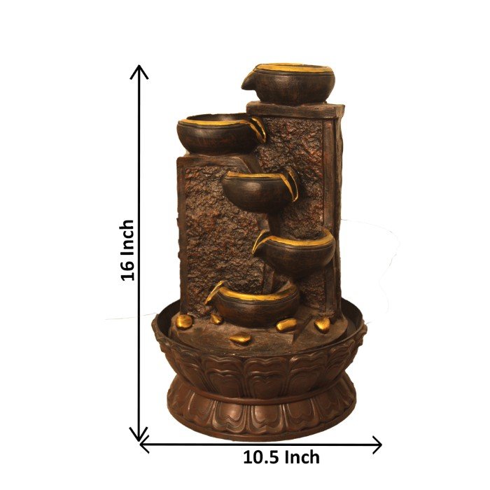 Modern art Diya indoor water fountain is a beautiful showpiece for home decor. This indoor water fountain not only looks great but also brings positivity to your space. Sound effect of water fountain helps create a positive and harmonious environment. As a home decorative water fountain, it adds a touch of elegance and peace to your living space. This modern art also makes for a wonderful decorative gift item for home decoration, ideal for housewarmings or special occasions. An indoor water fountain is best decoration and thoughtful gift. Whether placed in a living room, home, office, showroom, restaurant, hotel and wedding hall, the gentle sound of flowing water can enhance the beauty of area. As a gift, an indoor water fountain is not only visually appealing but also symbolizes harmony and balance. Water fountain is best ideal decorative gift choice as birthday, housewarming, office / shop inauguration, New Year, Wedding, Corporate Diwali gifts or any occasion.